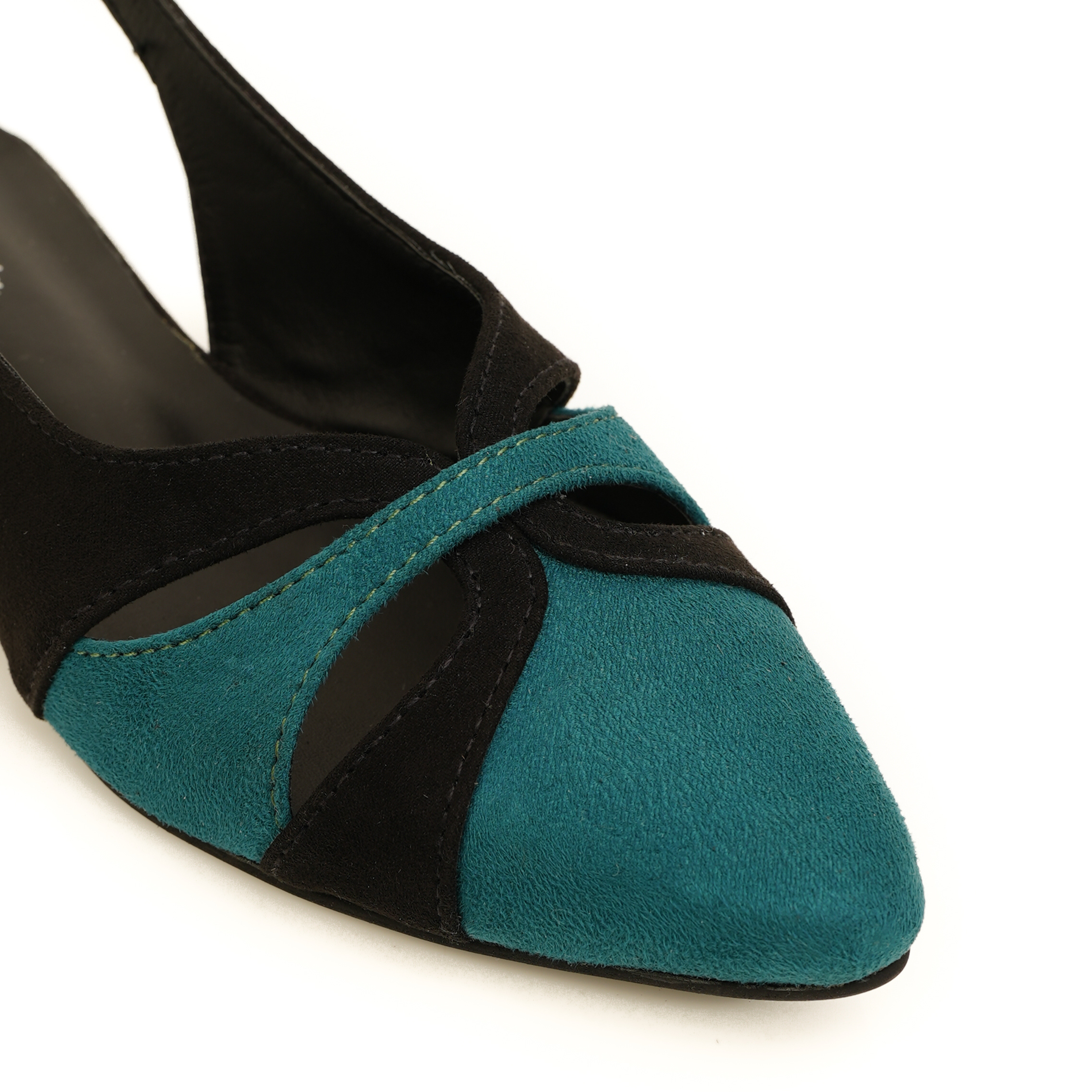 These pumps seamlessly blend effortless style with captivating elements, making them both subtle and eye-catching. Crafted with luxurious suede and contrasted with dual tones, the outcome is a sophisticated yet lively design, perfect for everyday wear with added comfort.