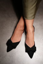 Combining sleek and effortless style with eye-catching features, these pumps are subtly attention-grabbing. Made with soft suede and adorned with a bow, they offer an elevated and versatile design, perfect for comfortable wear all day long.