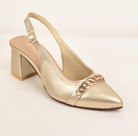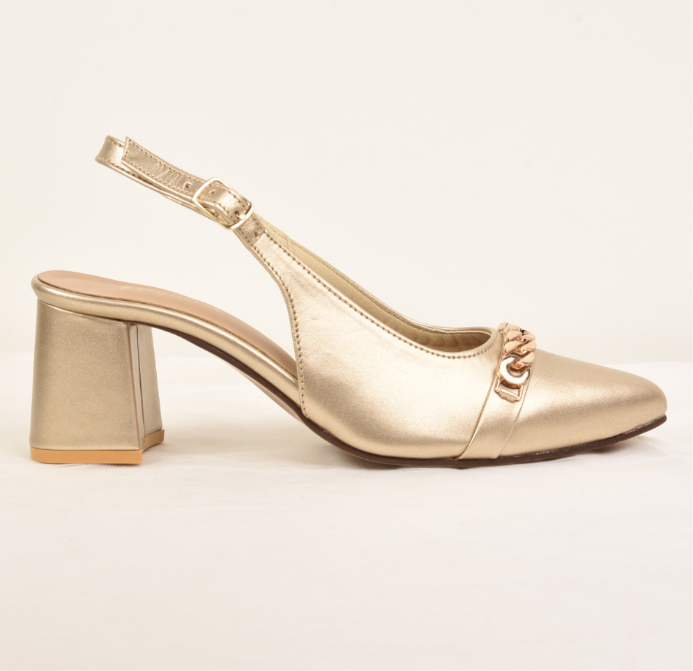 Ooze glamour in every step with these sophisticated Salena heels. Featuring closed toe pumps style with delicate chain and modern trapeze block heels with pointy-toe ensuring superior comfort and flexibility. Get ready to receive major compliments. It's a wonderful pair to wear with your most dressy outfits.