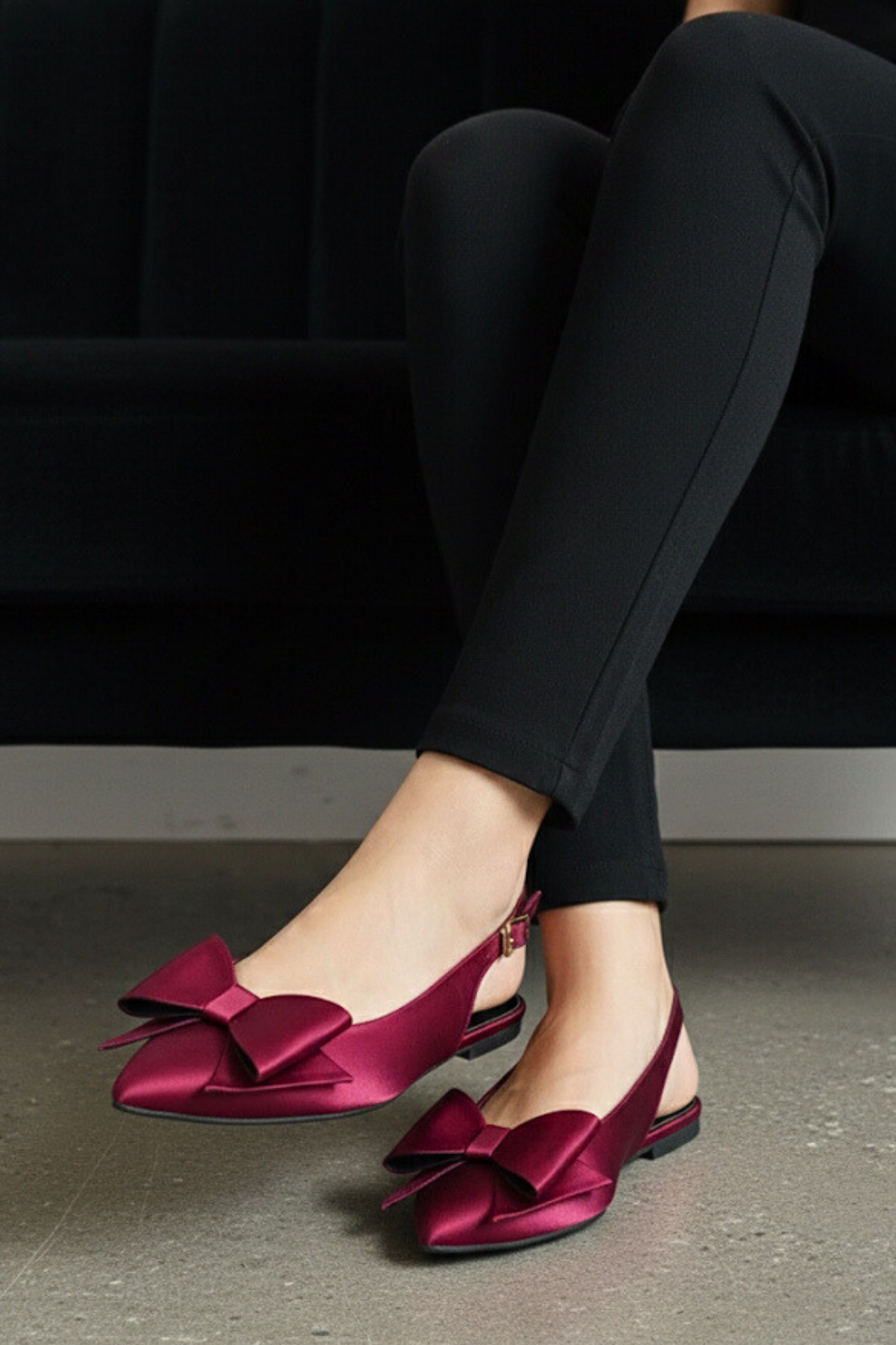 Step into sophistication with these Bow Slingback Pumps, designed to blend timeless charm with modern femininity. Crafted with a sleek satin finish, these pumps feature a pointed toe adorned with a chic oversized bow, adding a graceful touch to any outfit.