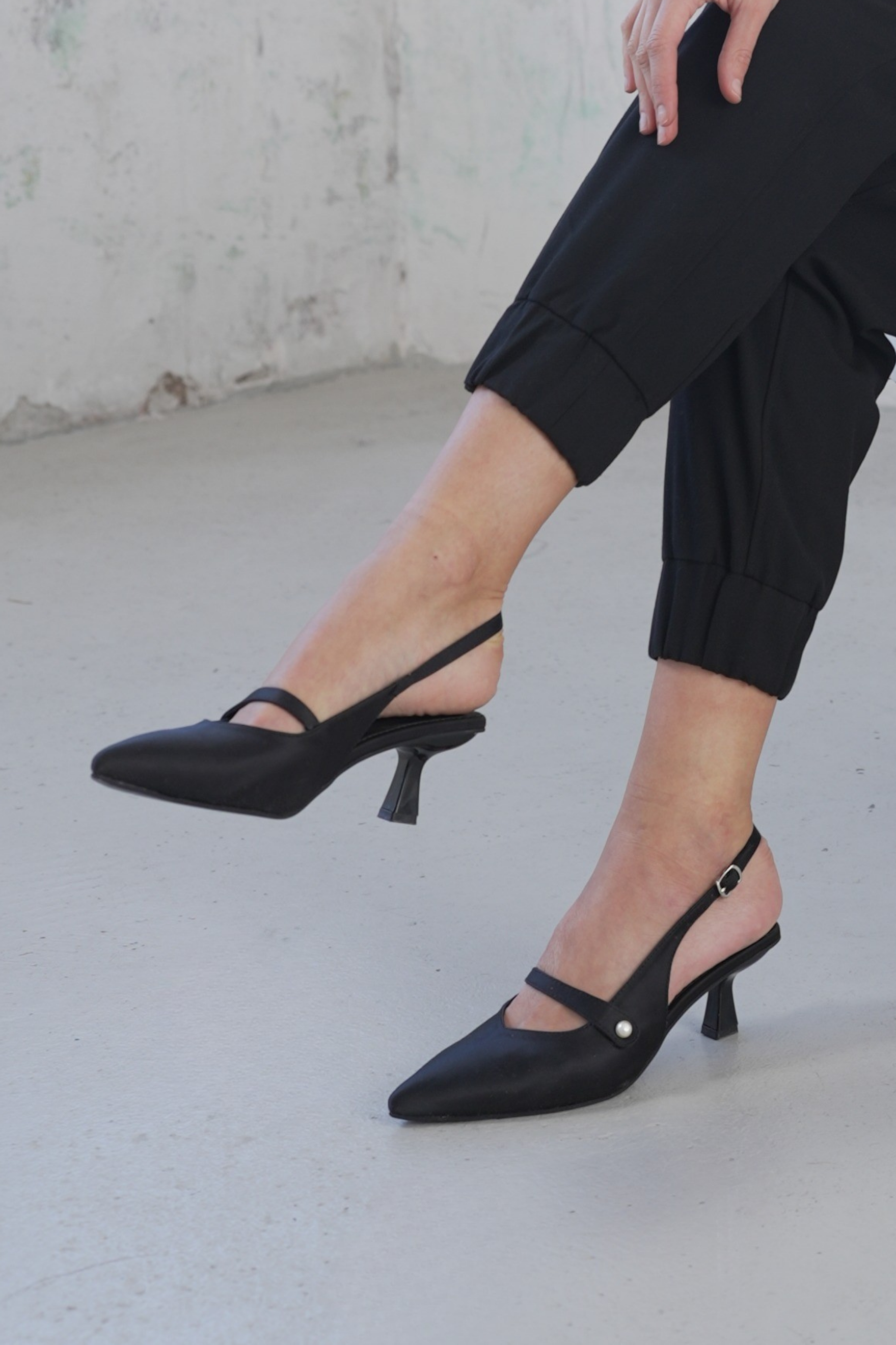 Unveil your inner elegance with The ASTORIA Slingback, a masterpiece of minimalist design and maximum impact. These pumps redefine sophistication, built upon a foundation of a razor sharp pointed toe and an elegantly sculpted kitten heel. The silhouette is secured by a delicate slingback architecture, while the subtle cross-vamp strap, punctuated by a single, iridescent pearl stud, captures light and attention. More than a shoe, it's a signature piece a versatile chameleon that transitions effortlessly from the polished gravity of the boardroom to the effervescent charm of an evening gala. Subtlety is the new statement.