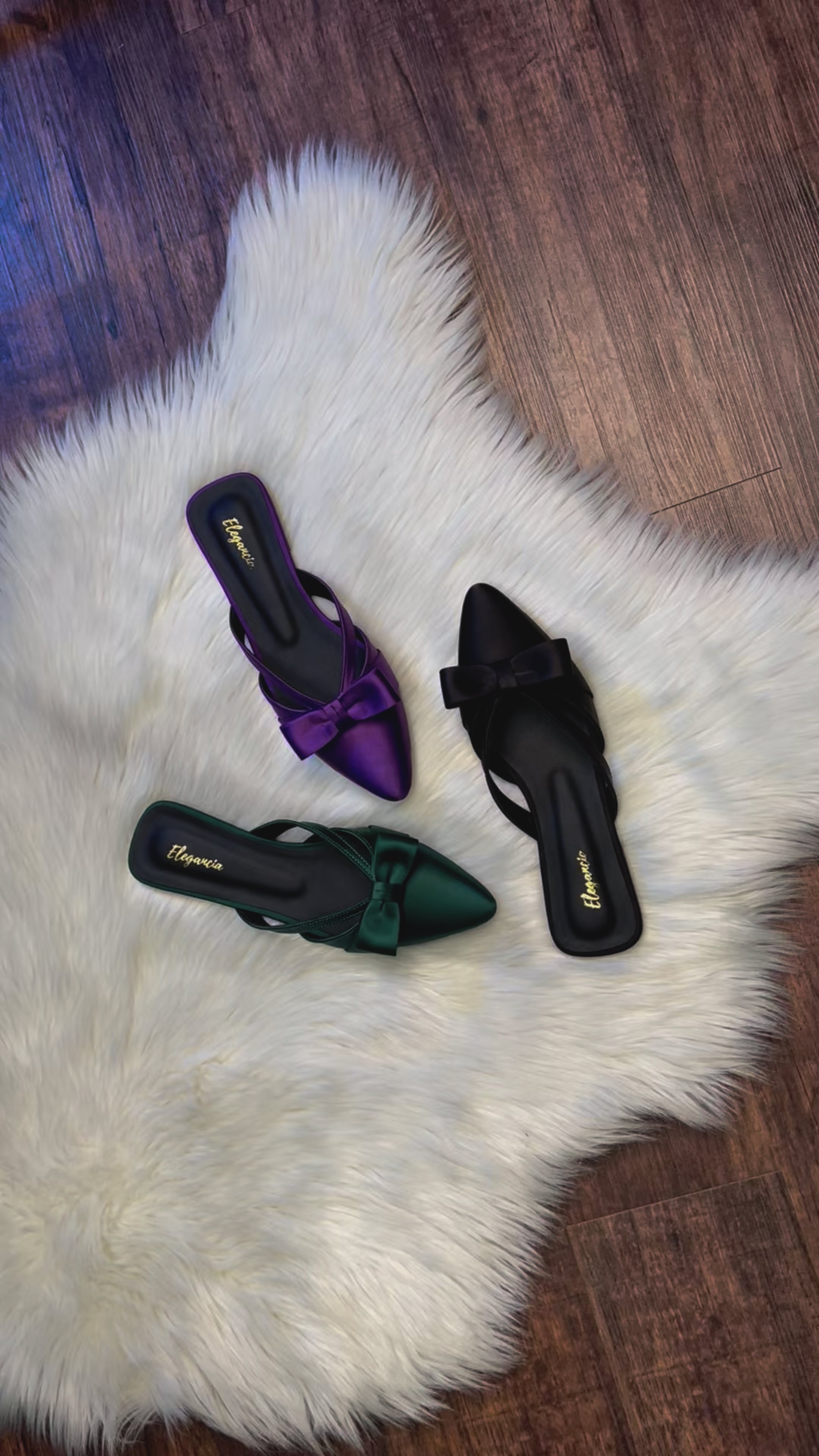 You search for the perfect mule ends here with these pointed-toe pumps.  These ones, adorned with adorable bow embellishments, add a touch of feminine charm to the design. Style them with anything in your closet to effortlessly create a polished and put-together look.Â