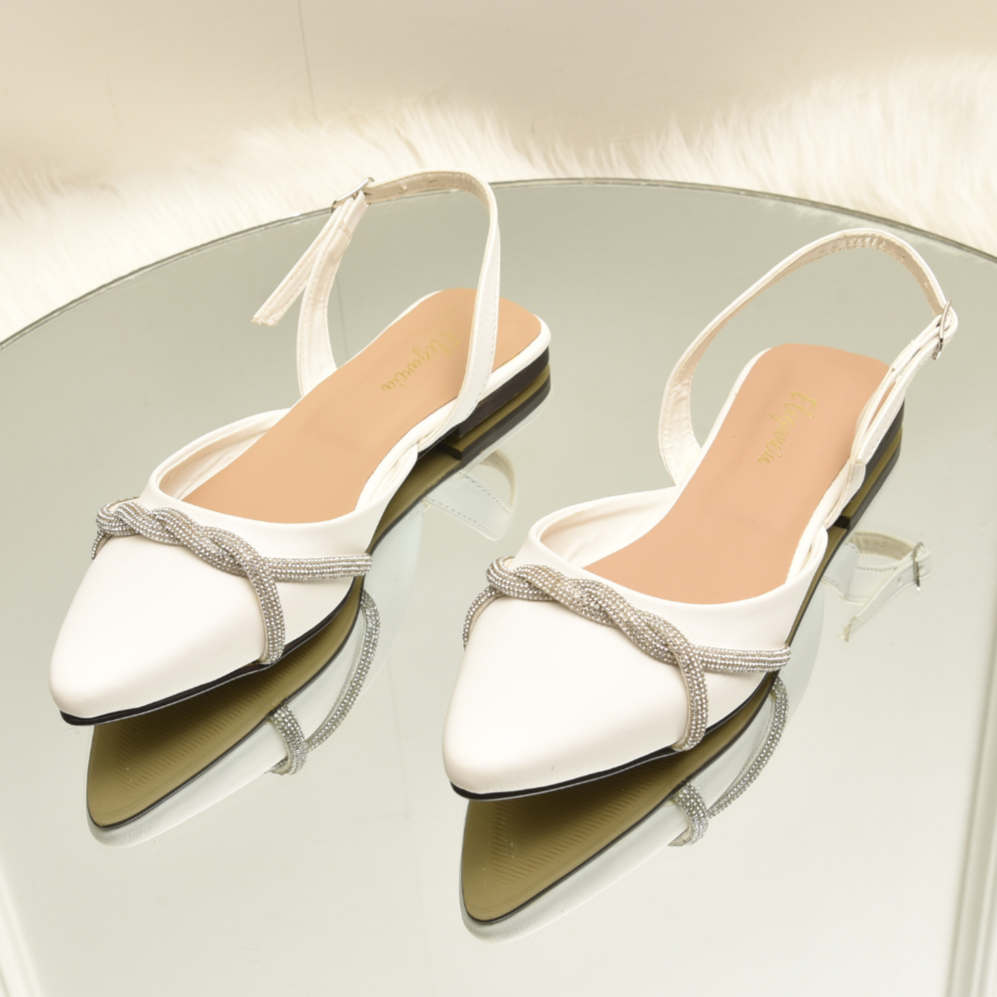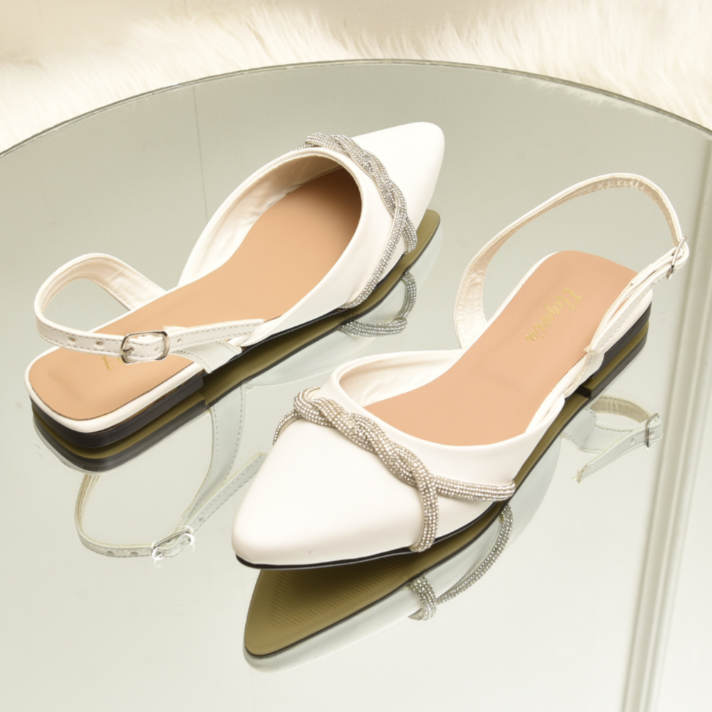 Equal parts stylish and sophisticated, these slingback pumps are a must-add to your list of closet essentials. Featuring a sleek and classy pointed-toed silhouette, with luxurious twisted gem embellishments across the vamps makes a great visual contrast while adding a chic finish to these shoes. Bonus points for adjustable slingback straps that will help you find a perfect fit.