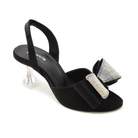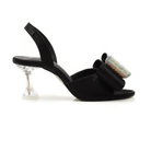 Inject a touch of decadence to your evenings with these transparent square toe heels. Featuring comfortable sole with bow shaped embellishment with rhinestones adding futuristic glam to your shoe-dobe.