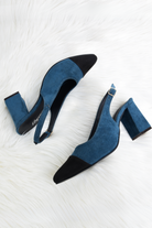 An edgy take on the classic slingback pump, these heels will quickly become your new favorite. The sharp pointed toes and sleek back finish maximizes the leg-lengthening effect it will have on your frame, creating a flattering silhouette. The covered detailing along the toplines make a striking yet wearable statement. Complete with thin buckled straps for a dainty element, these heels are a sophisticated addition to your daily rotation.