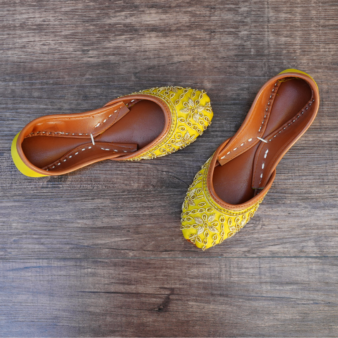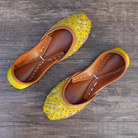 The minimal design of this pair makes it stand out. This khussa embellished with cutdaana and dubka; the heavy detailed work is going to be an eye candy that fits every festive outfit. Elegancia offers you a blend of style, comfort and ethnicity, everything you need at one place.Â