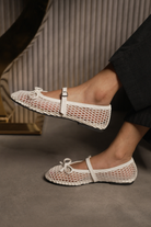 The ultimate versatile shoe, these black net flats can be dressed up or down with ease.