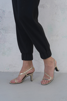 - Design Details: Thin, asymmetrical straps with a clear/translucent accent across the toe.