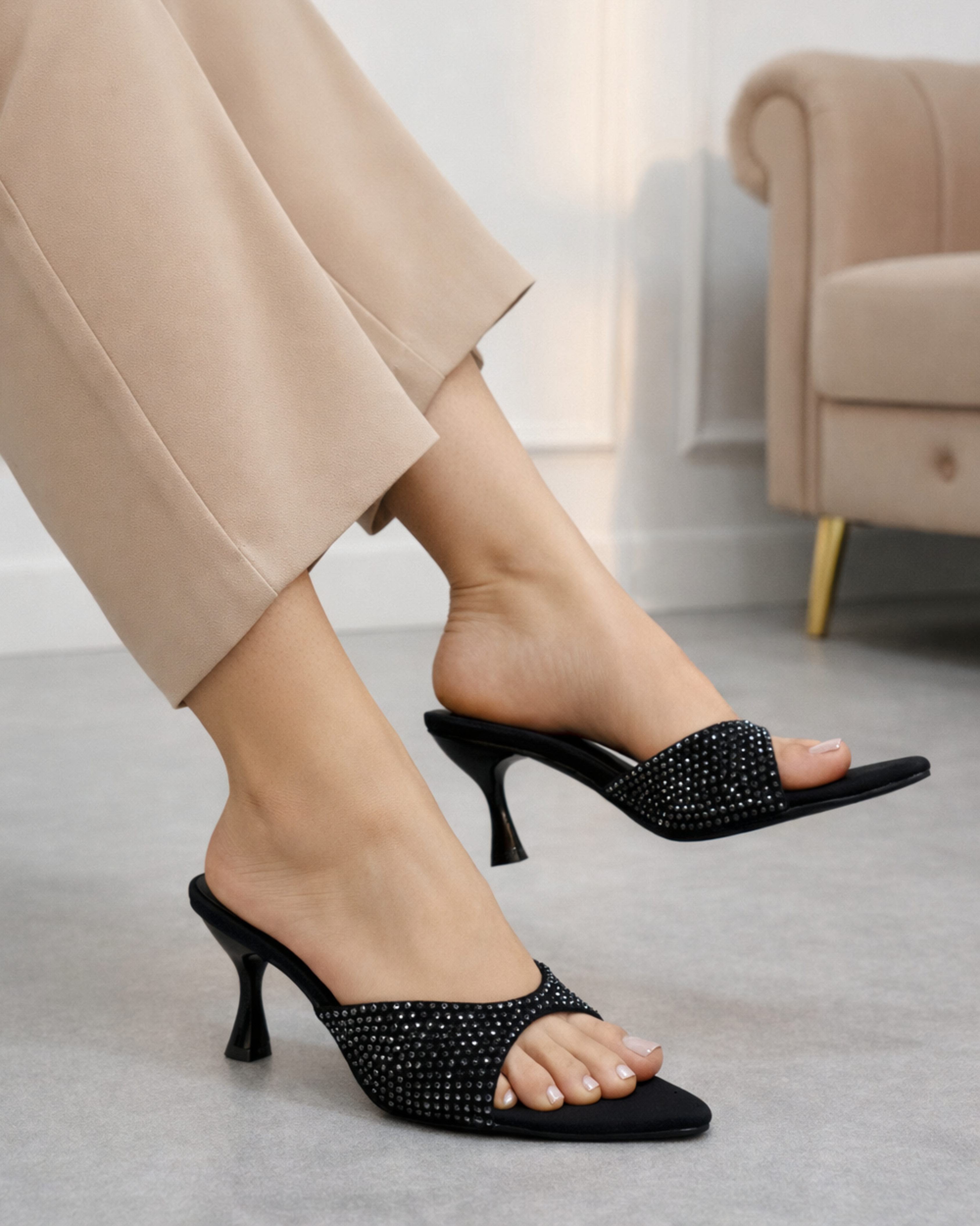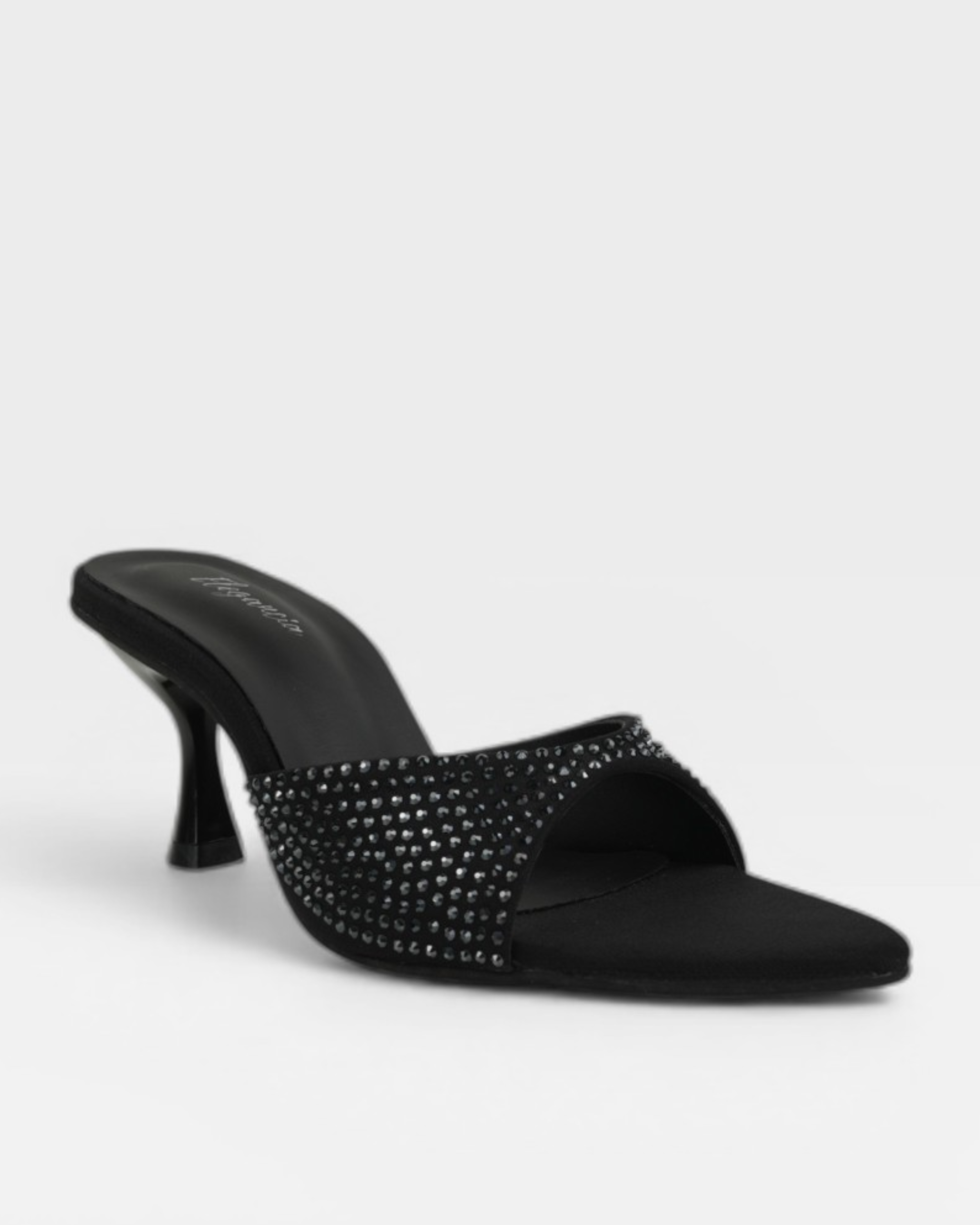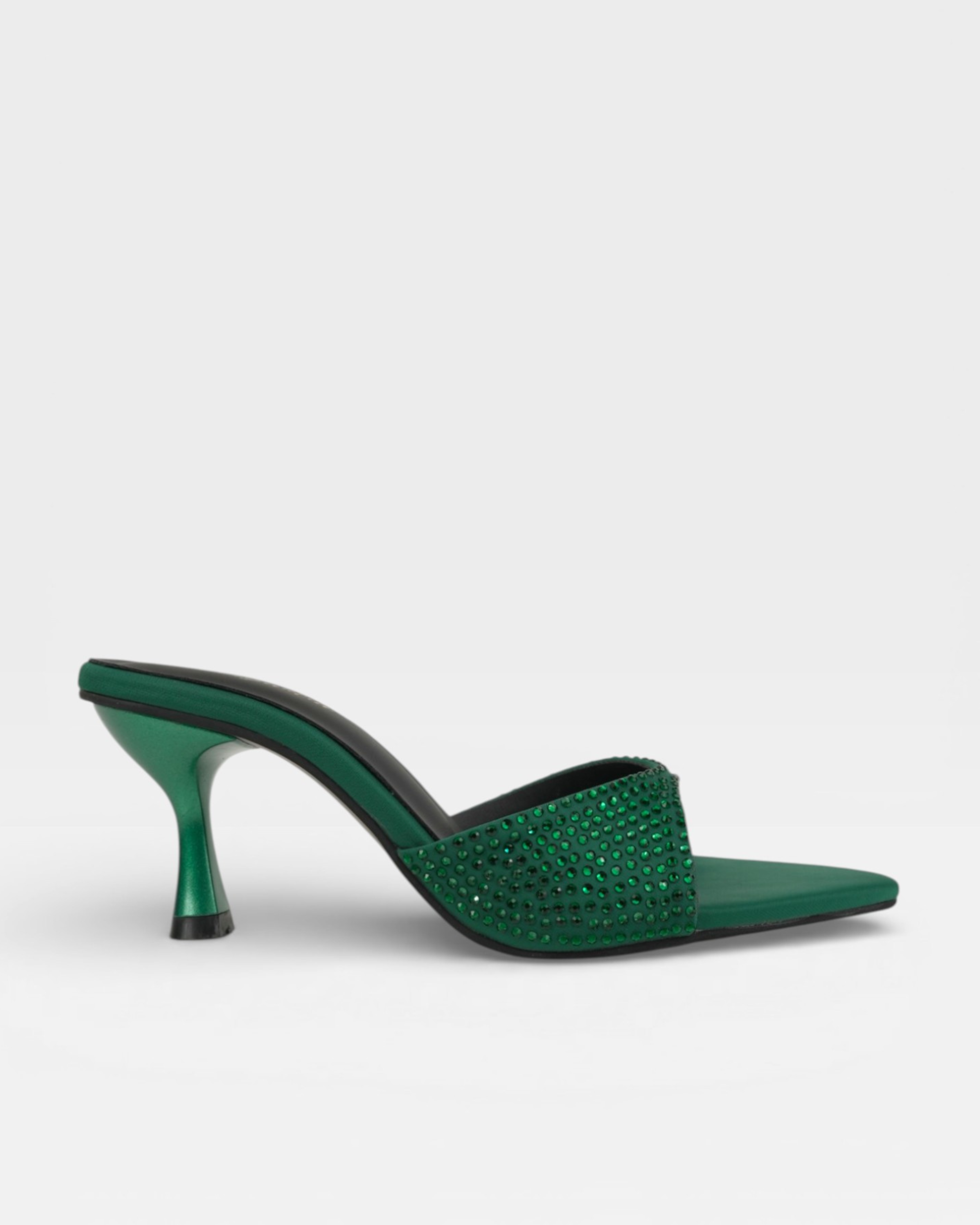 Redefine sophistication with a sleek, pointed-toe silhouette designed to elongate and captivate. Crafted with a luxurious upper and adorned with tonal crystals, these mules offer a refined sparkle for your most high-profile events.