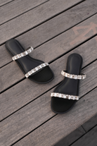 You can't go wrong with adding a little bling to your look, and these Stardust slides will do the trick perfectly. These modern slides feature a black comfortable sole and double stunning rows of sparkling crystal gems across the toe strap bands over the foot, creating a classic open-toe design. We made sure that your shoes are one stylish step ahead of the crowd with our Stardust Slides.