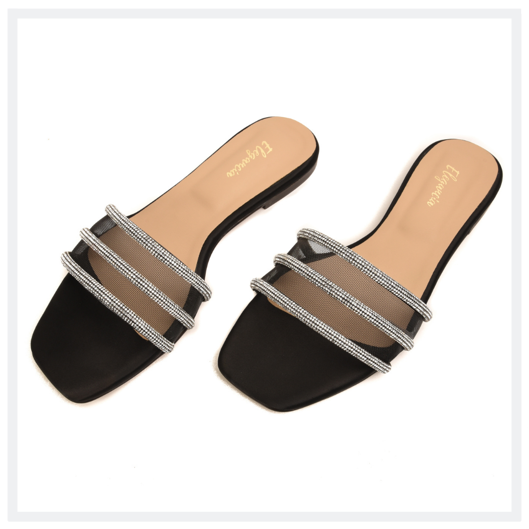 The epitome of modern chic, these Dazzle slides are the ideal companion to all of your party edits this season. Beautifully crafted with sleek and sparkly gem embellished straps, these alluring flat slides can be worn to instantly perk up any outfit. Make a bold appearance in them with a glamorous dress and a matching gem-encrusted clutch.