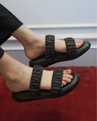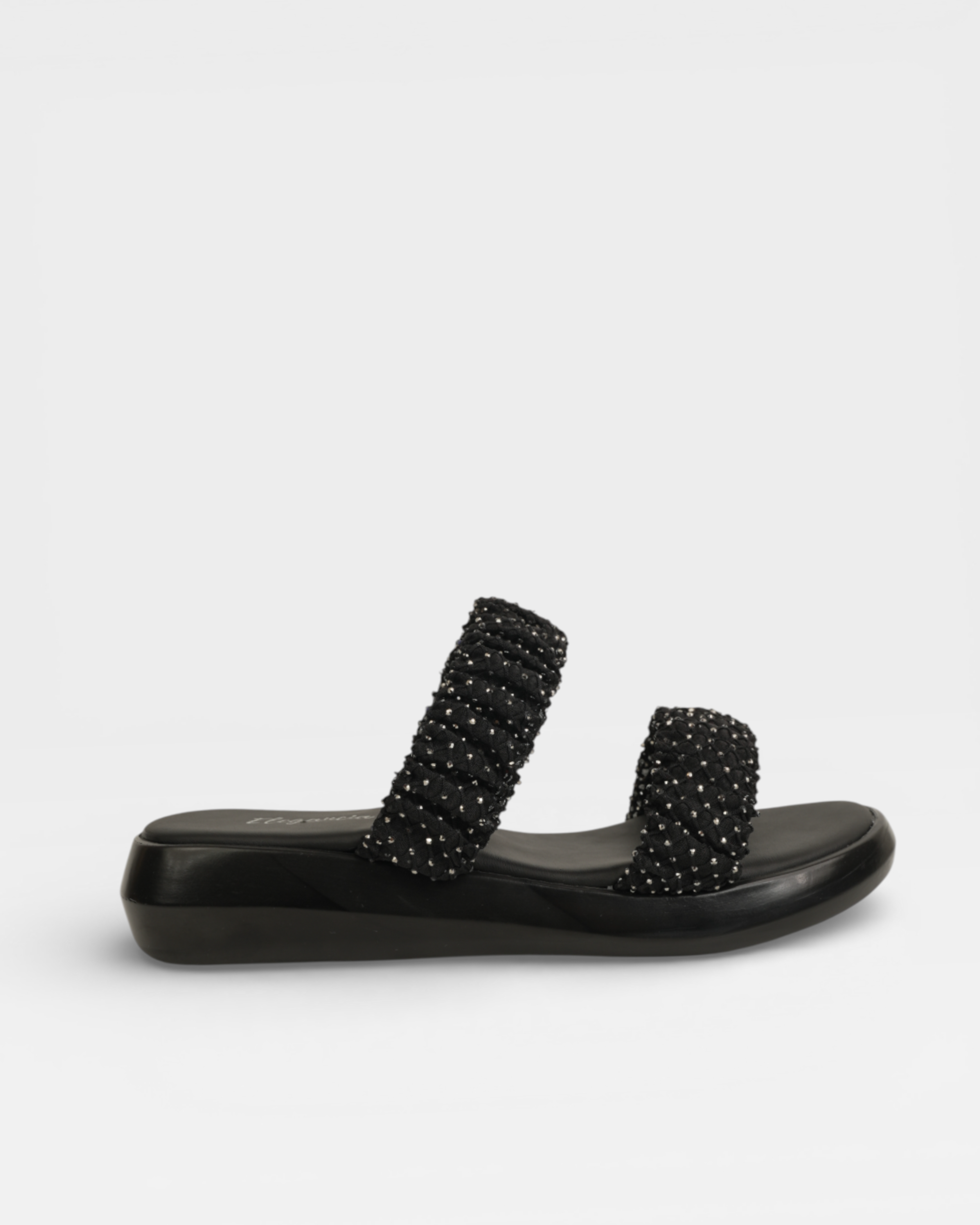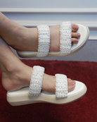 Step into effortless glamour with the Rhinestone Sparkle Slides. These slides blend a comfortable platform base with high-fashion textures, making them your new go-to for both casual days and elevated evenings.