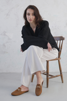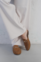 Step into effortless chic with these classic AZURA loafer mules, blending timeless comfort with modern polish. Crafted from a soft, rich suede-like material, these slip-ons feature a round toe and a smooth, backless design for ultimate ease. The defining feature is the elegant gold horse-bit chain detail across the vamp, adding a refined, equestrian-inspired touch that elevates any casual or semi-formal look. The low, sturdy heel and cushioned footbed make these a perfect choice for all-day wear whether you're at the office, running errands, or enjoying a relaxed weekend.