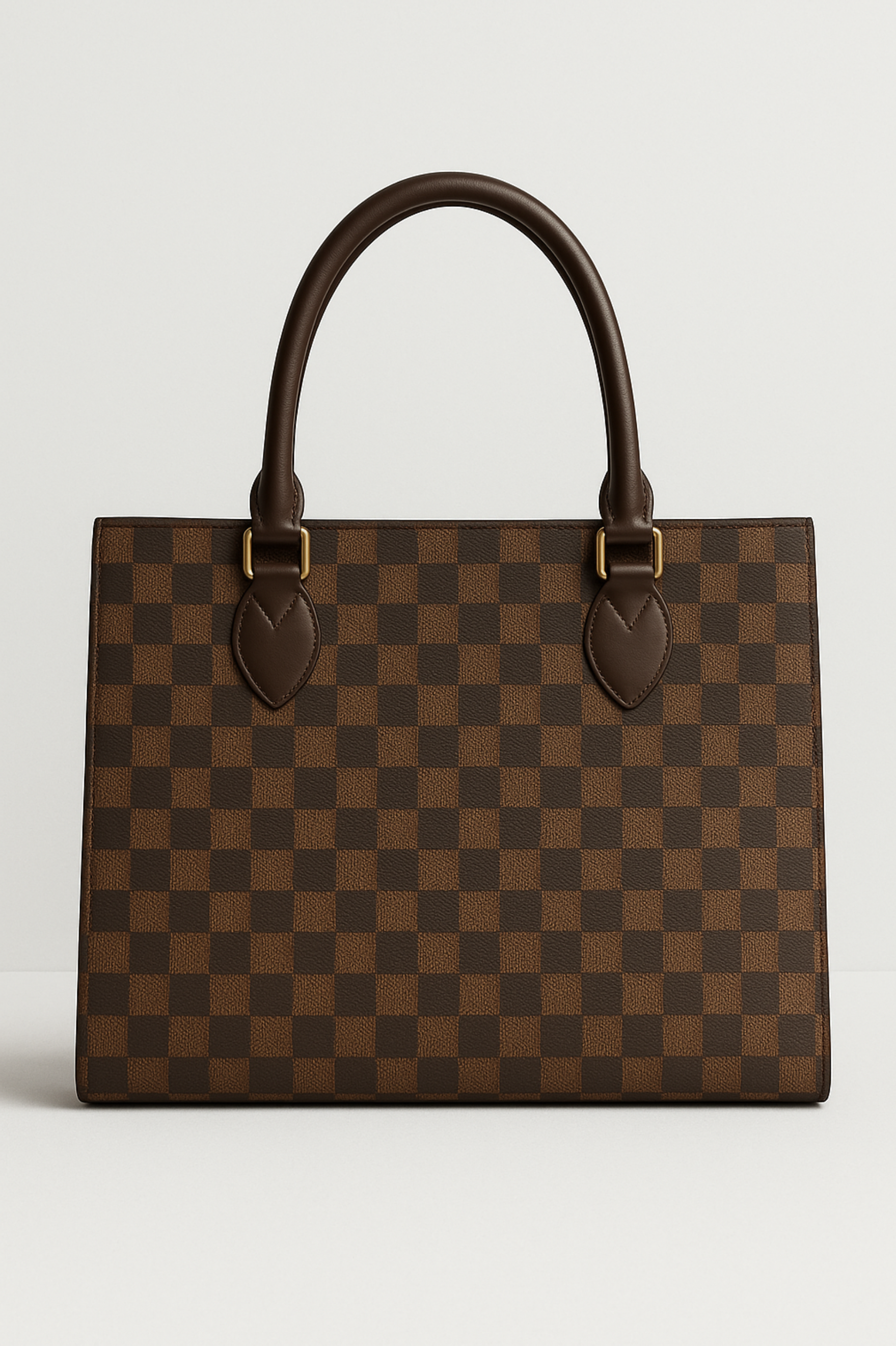 Signature Design: Classic brown checkered pattern with gold-tone hardware