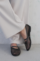 The ultimate versatile shoe, these black net flats can be dressed up or down with ease.