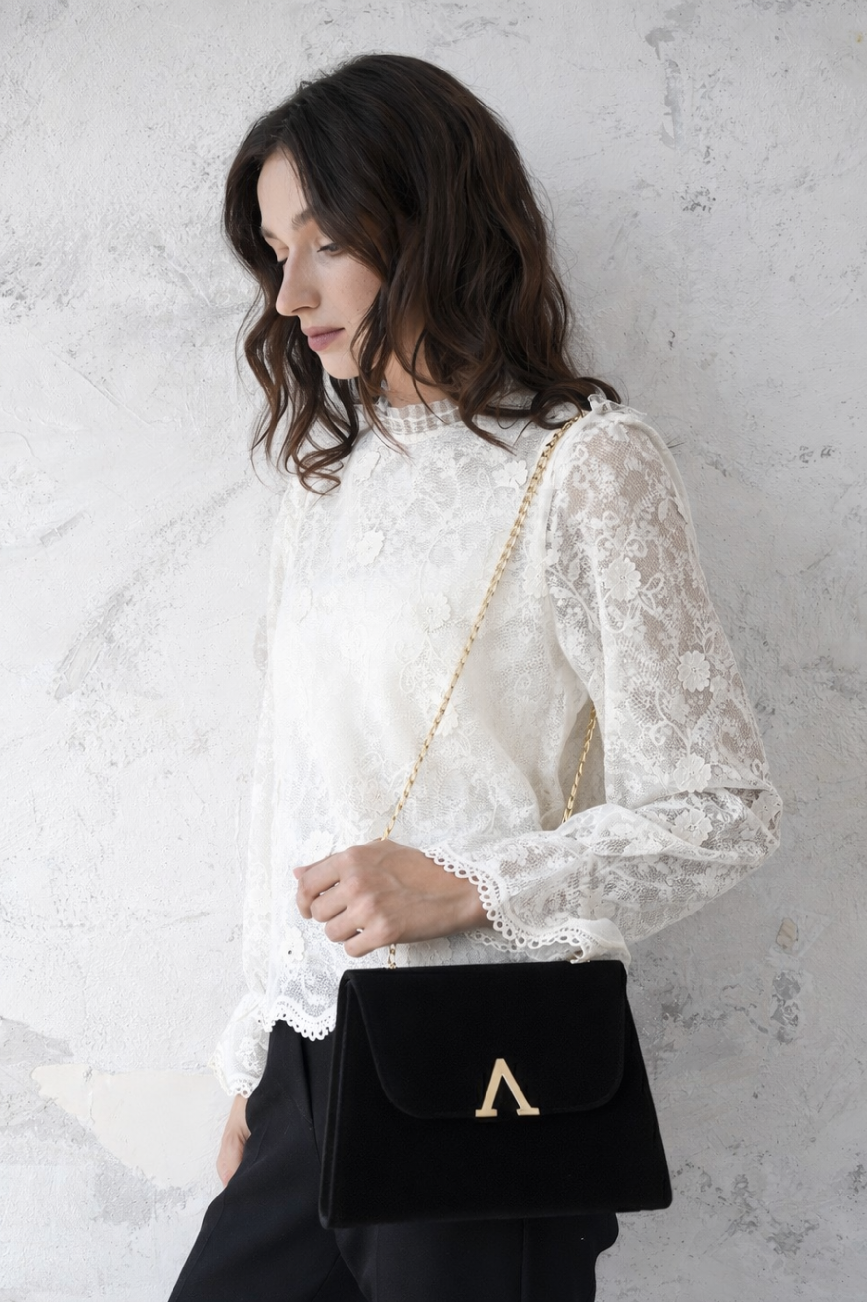 This chic cross body handbag exudes timeless elegance, blending refined craftsmanship with a modern edge. Its structured shape and clean lines create a sophisticated profile, while the metallic V-shaped clasp serves as a distinctive focal point. Designed for both style and practicality, it effortlessly transitions from day to evening occasions.