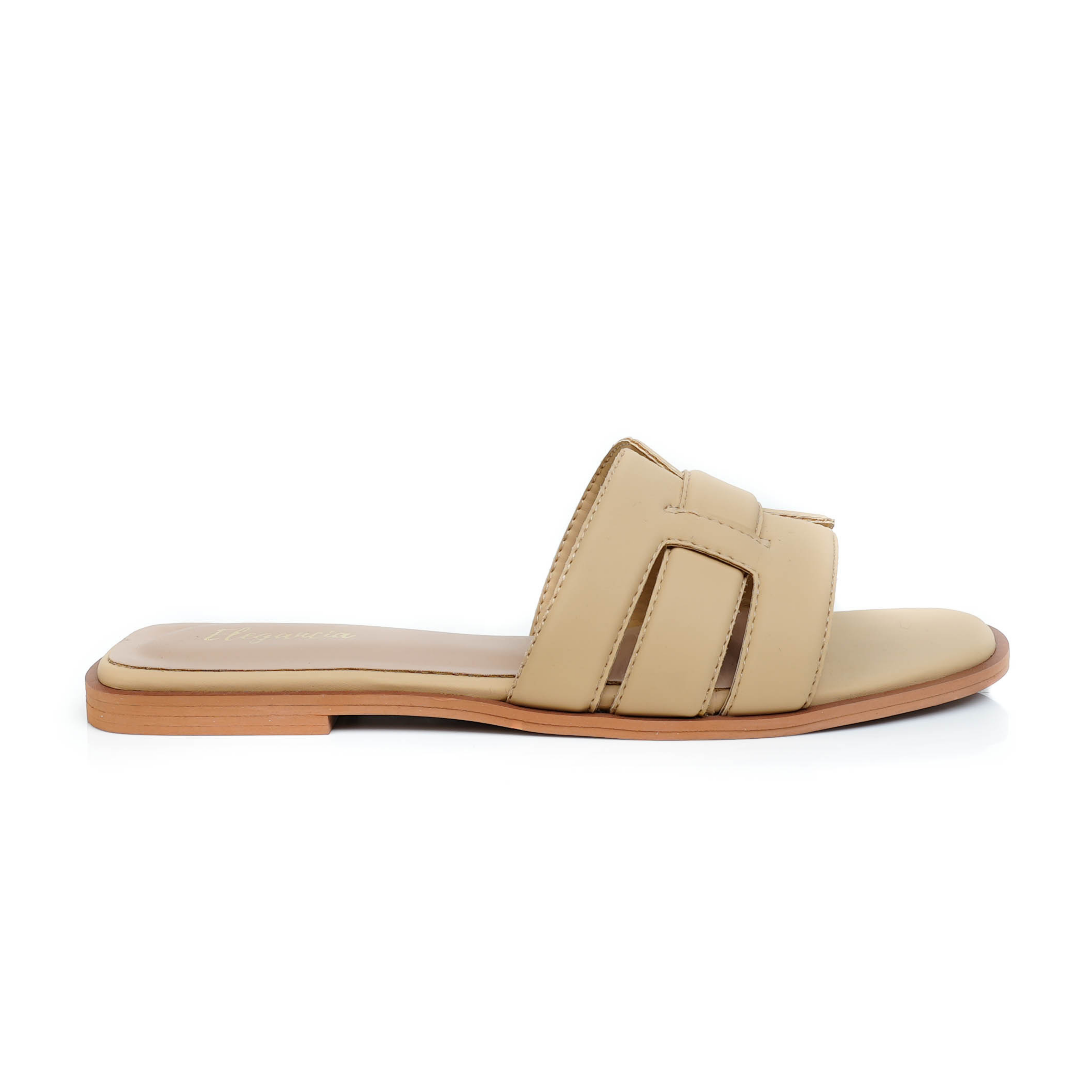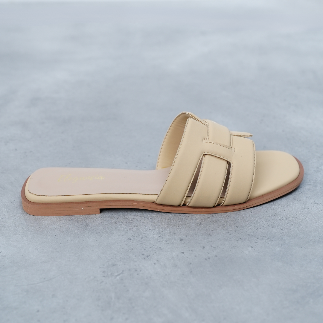 The solid-colored slide features a square toe all the while gripping your feet in a comfortable hold of the trendy H-shaped vamp band, supported by the uniquely designed soles to ensure the utmost care to your feet.