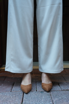 - Design: Pointed toe, slingback with adjustable ankle strap